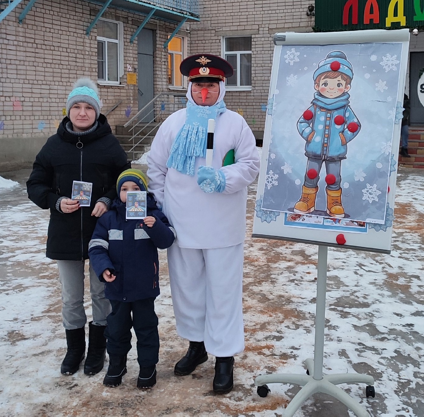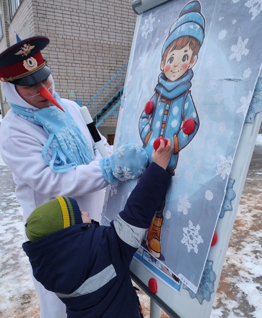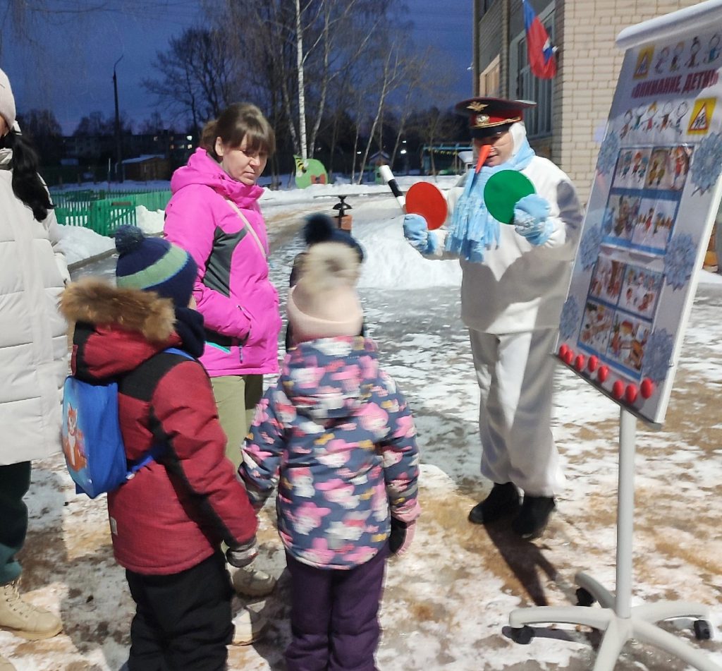❄️ Вместе с инспектором дорожного движения Снеговиком, родители и дети закрепляли правила безопасного движения на дороге в зимнее время.